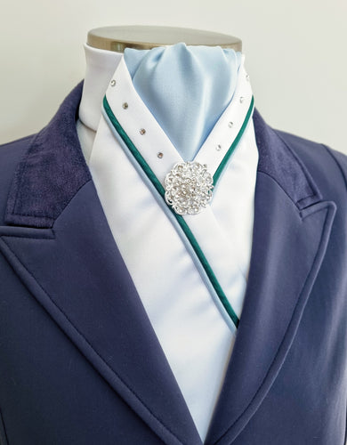 ERA SOPHIE STOCKTIE - White & pale blue with green & pale blue piping, crystals and brooch
