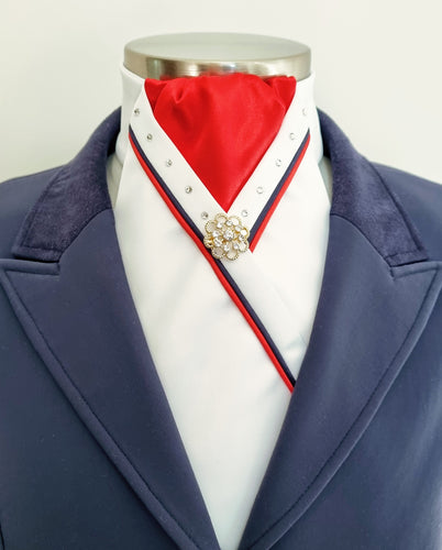 ERA SOPHIE STOCKTIE - White & red with navy & red piping, crystals and brooch