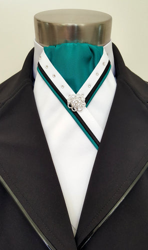 ERA SOPHIE STOCKTIE - White & jade with black & jade piping, crystals and silver brooch