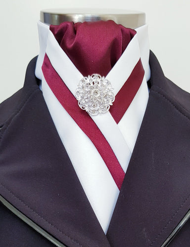 ERA TAYLA STOCK TIE - White satin with burgundy and brooch