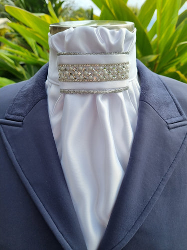 ERA EURO REGAL STOCK TIE - White satin with crystal striped trim