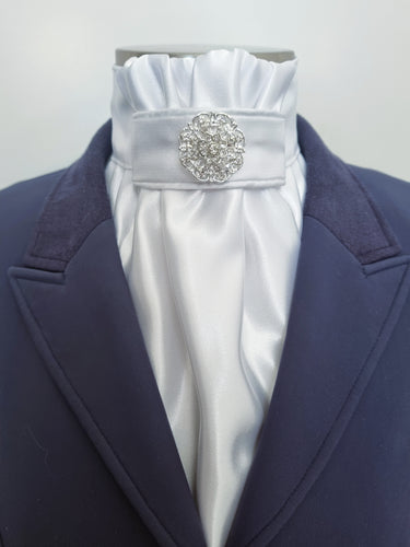 ERA EURO CHARIZE STOCK TIE - White satin, silver piping and silver brooch