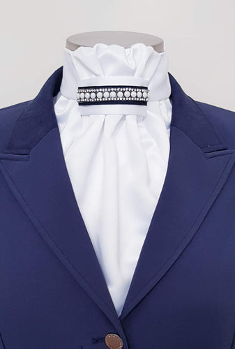 ERA EURO REGAL STOCK TIE - White satin, navy trim with pearl and crystal trim
