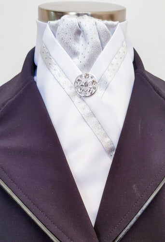 ERA TAYLA STOCK TIE - White satin with silver spot brocade and brooch