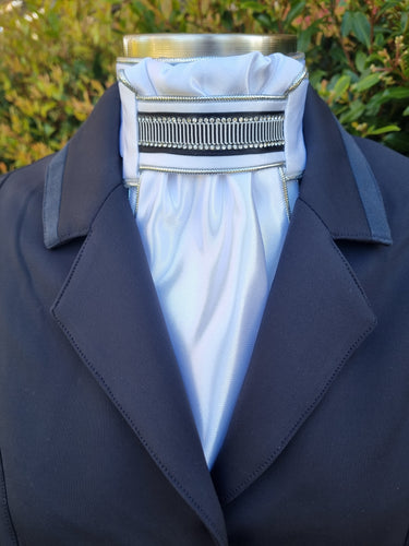 ERA EURO LYNDAL Stock Tie - White satin with silver metallic piping and brooch
