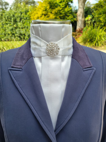 ERA Elle Pre-tied Stock Tie Plastron - White Satin Soft Ties Full Body Flock Georgette & Brooch