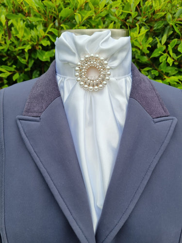 ERA EURO CHEVAL LUSTRE STOCK TIE - White lustre satin with Diore pearl brooch in gold