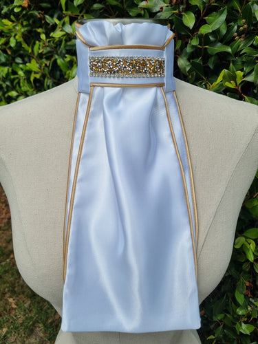 ERA Euro Lyndal Regal Stock Tie - White Satin with gold piping and gold crystal trim
