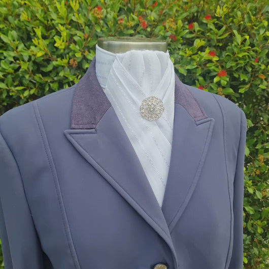 Pre-Tied stock tie. Made from top Cotton fabric with self stripe, secured with a Velcro attachment around the neck.